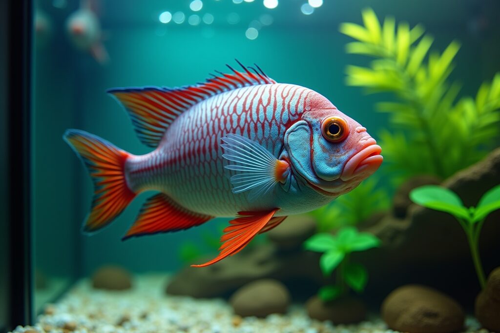 Der Diskus, auch bekannt als „König der Amazonas“, ist zweifellos einer der beeindruckendsten Süßwasserfische. Seine runde, scheibenartige Form und die leuchtenden Farben machen ihn zu einem echten Hingucker. Die Farbvarianten reichen von strahlendem Türkis über leuchtendes Rot bis hin zu tiefem Braun. Diskusfische sind anspruchsvoll in der Haltung und benötigen ein ausreichend großes Aquarium (mindestens 300 Liter) mit warmem, weichem Wasser. Sie sind Schwarmfische und fühlen sich in Gruppen von mindestens fünf Tieren am wohlsten. Investiere in eine gute Filteranlage und achte auf regelmäßige Wasserwechsel, um die Wasserqualität optimal zu halten. Mit der richtigen Pflege wirst du mit der Anmut und Eleganz dieser beeindruckenden Fische belohnt.
