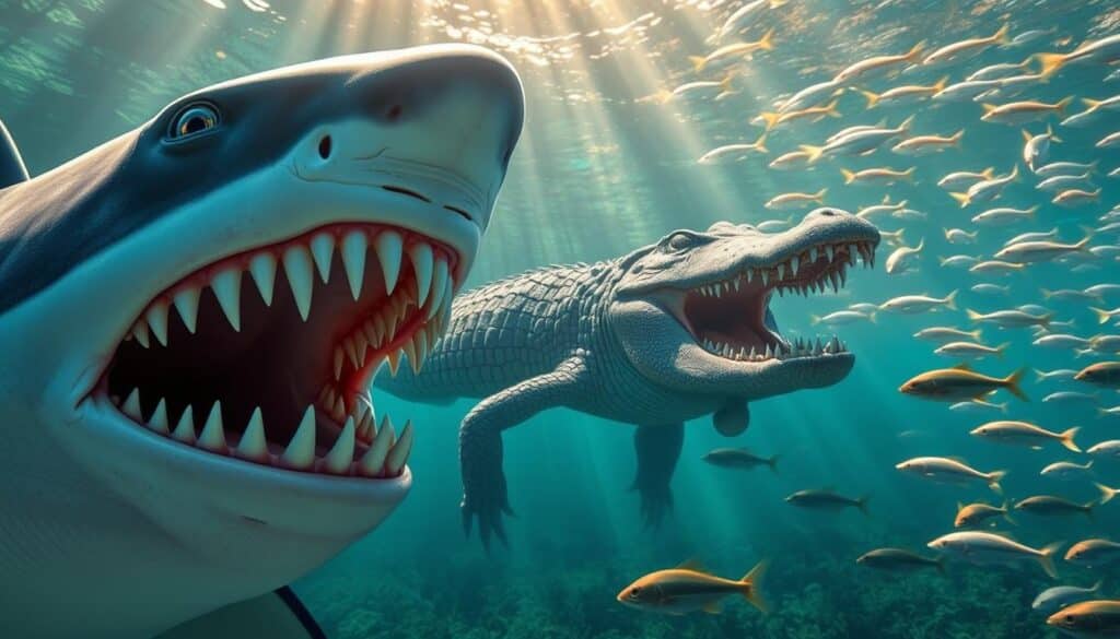 - Der Sandtigerhai: Besitzt lange, spitze Zähne, die ideal sind, um Fische und Tintenfische zu fangen.