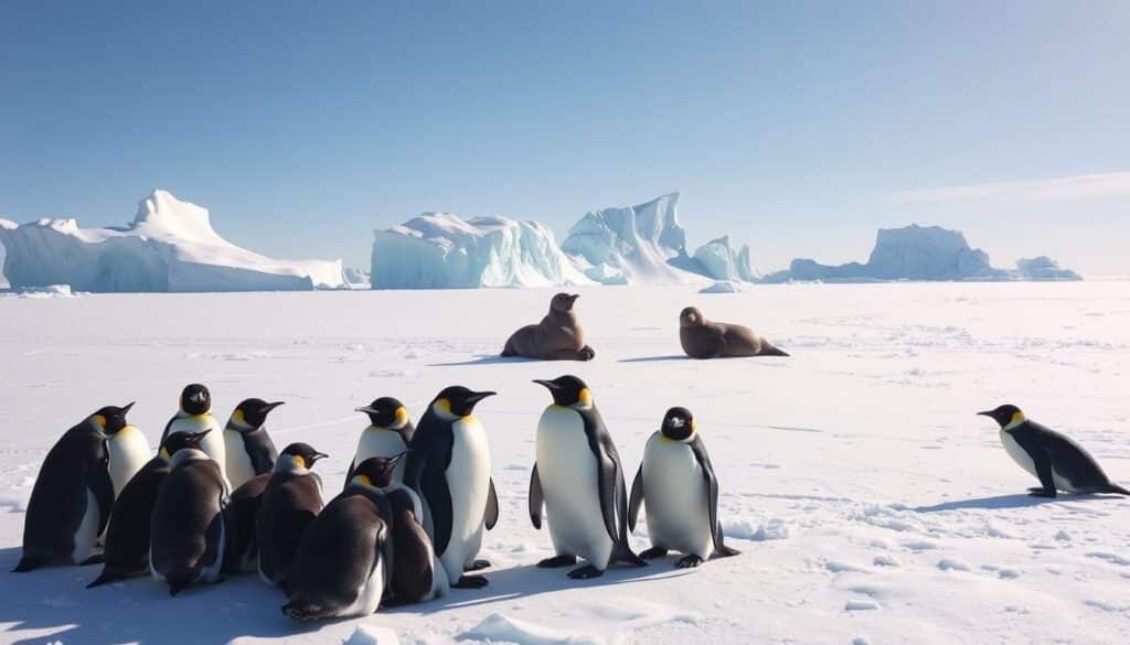 - Verhaltensanpassungen: Viele Tiere ziehen im Winter in wärmere Gebiete oder suchen Schutz unter dem Eis. Pinguine kuscheln sich in großen Gruppen zusammen, um sich gegenseitig zu wärmen.